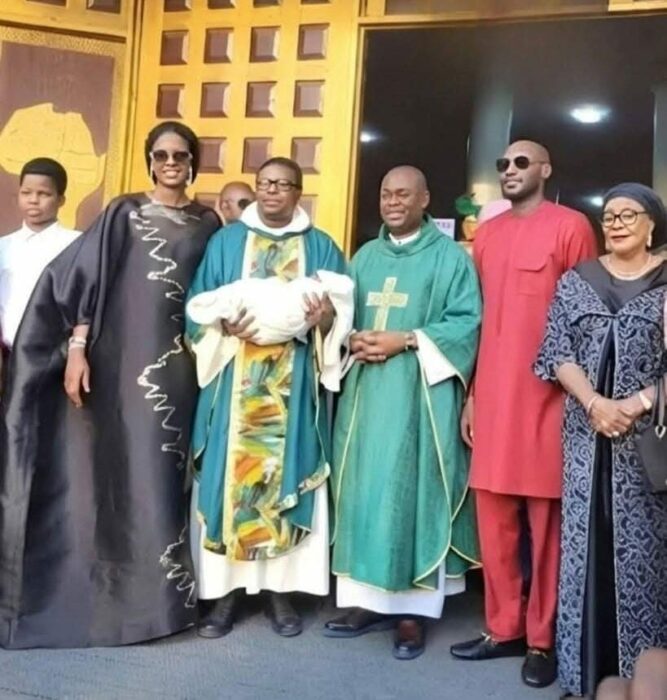 2Baba, Wife Natasha Dedicate Baby In Church - Seek.ng